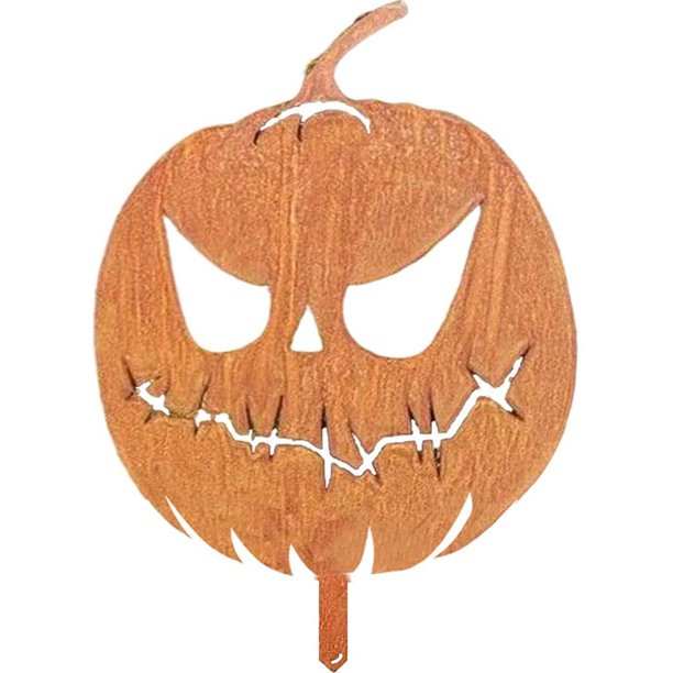 Halloween Metal Pumpkin Ornament is precision cut from steel and metal. The Pumpkin Garden Stake Decoration you receive will be pre-rusted and ready to be admired in your garden.